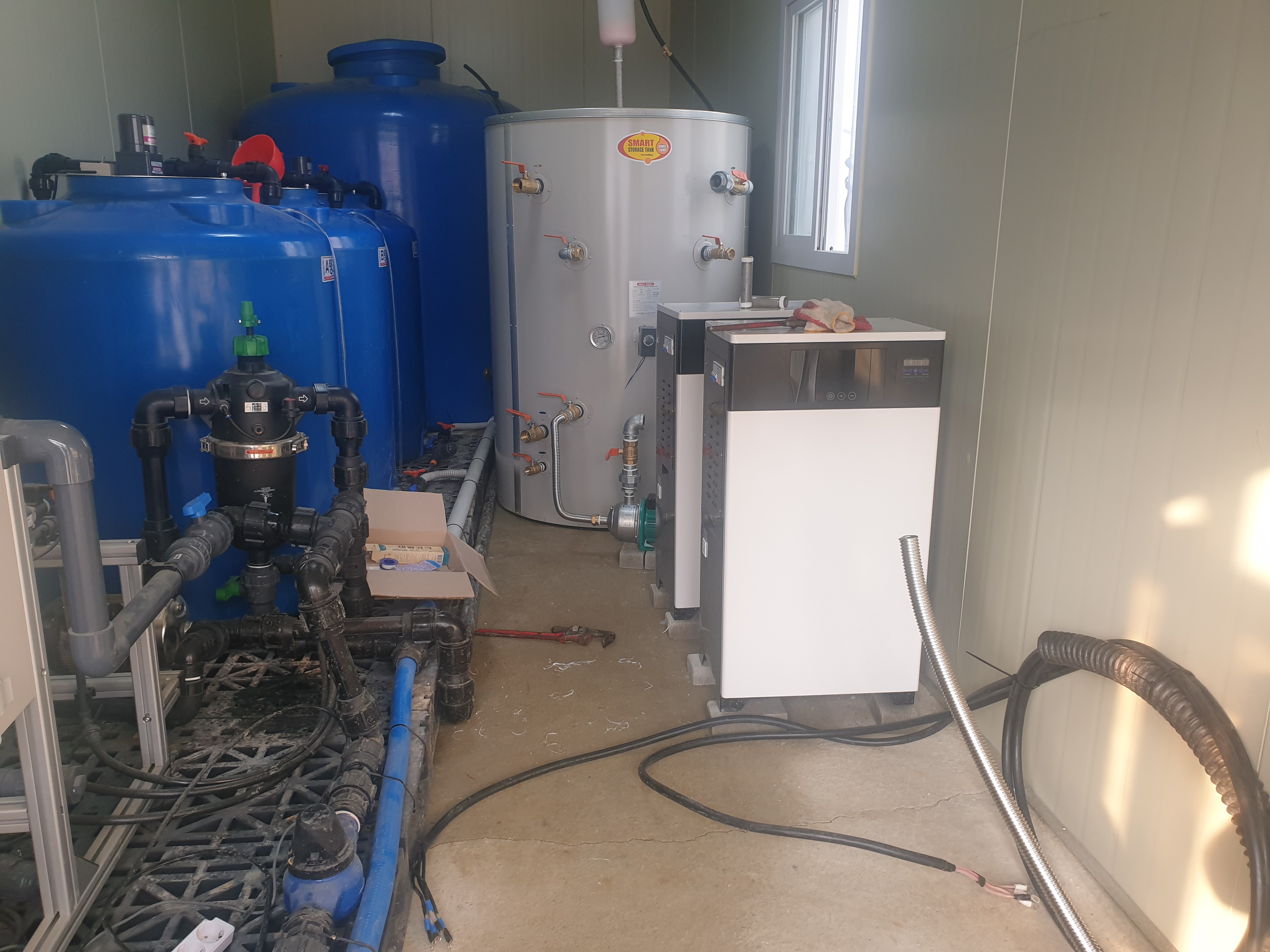전기보일러 30만kcal2대로 직접 난방을 보조탱크(1톤) 설치하여 보완